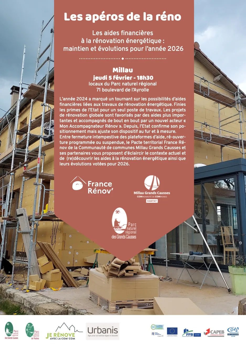 Jeudi 5 février, le service énergie du Parc organise un nouvel apéro de la réno pour décortiquer les aides à la rénovation énergétique.